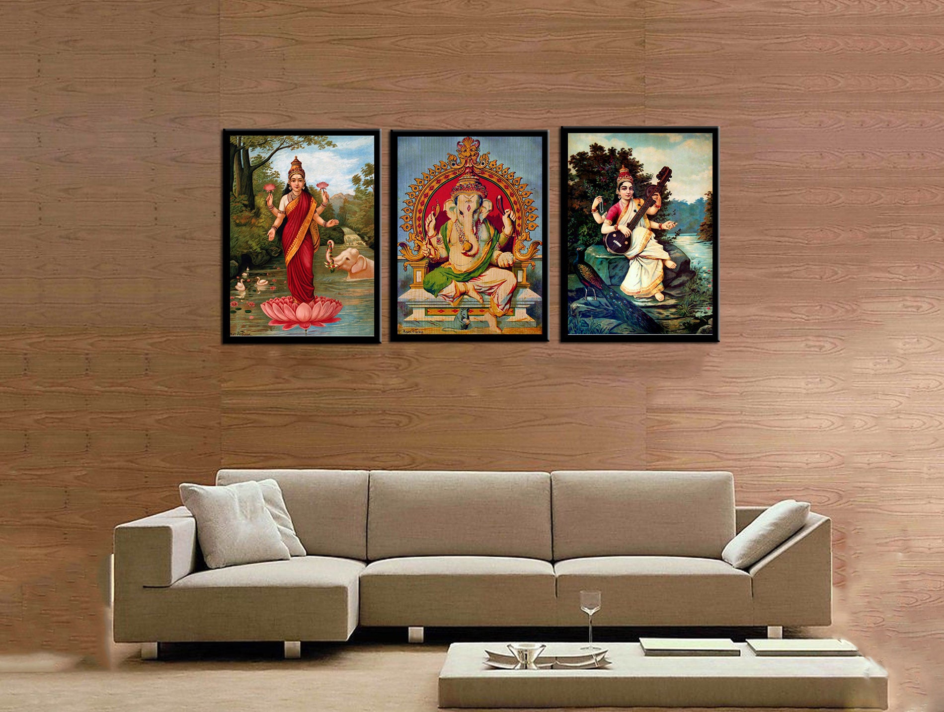 Set of 3 Ganesh Lakshmi Saraswati Raja Ravi Varma Framed